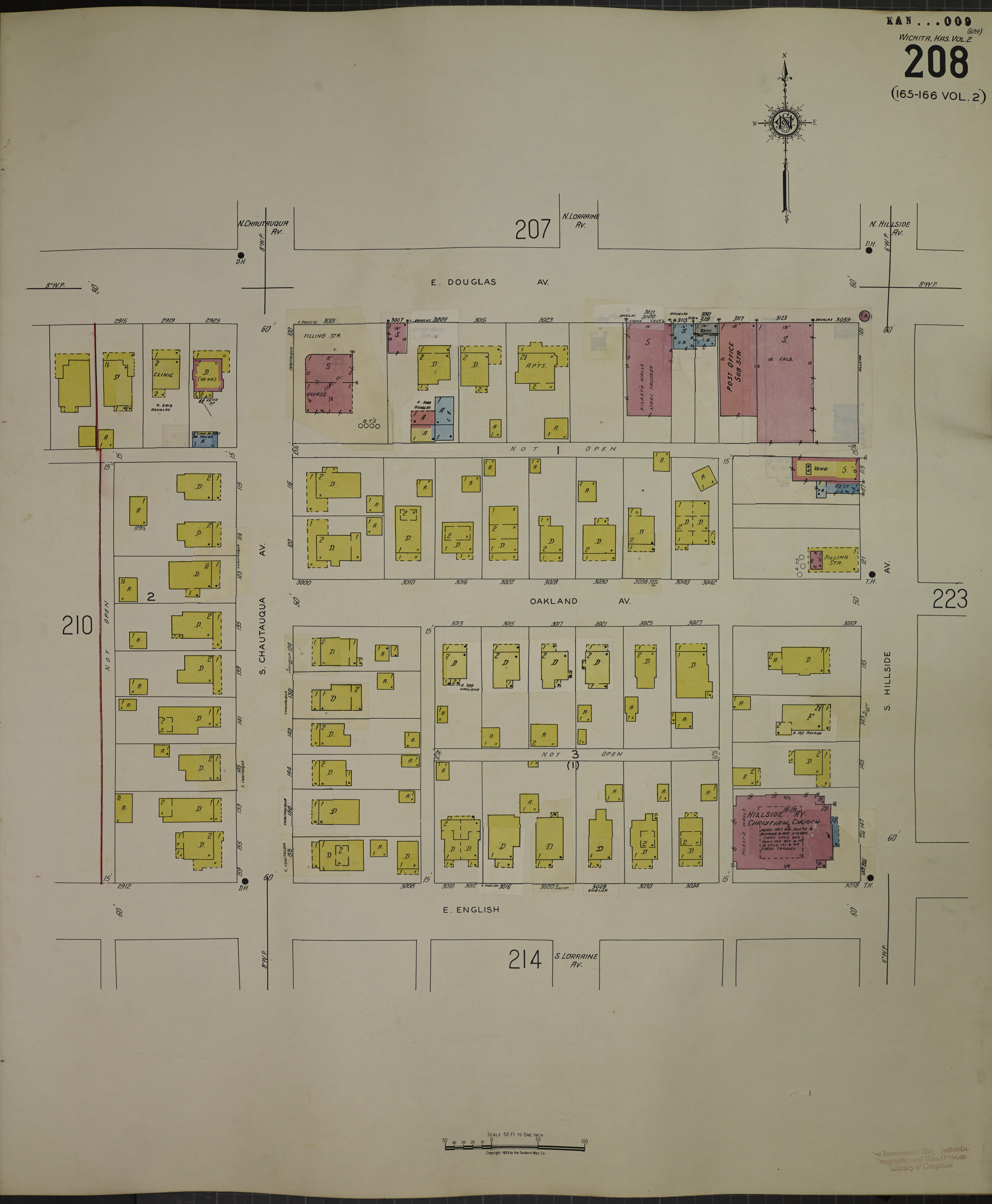 The Sanborn Map Company published maps to help fire insurance companies determine the fire risk of homes. The Library of Congress has maps from Wichita from 1894 to 1950. East Front shows up in the 1914 and 1935/1950 maps.